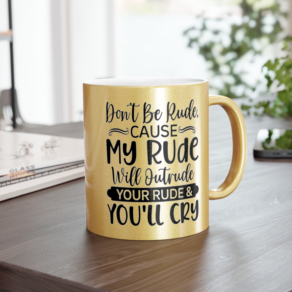 Don’t Be Rude Cause My Rude Will Outrage Your Rude & You’ll Cry, Metallic Mug (SilverGold)