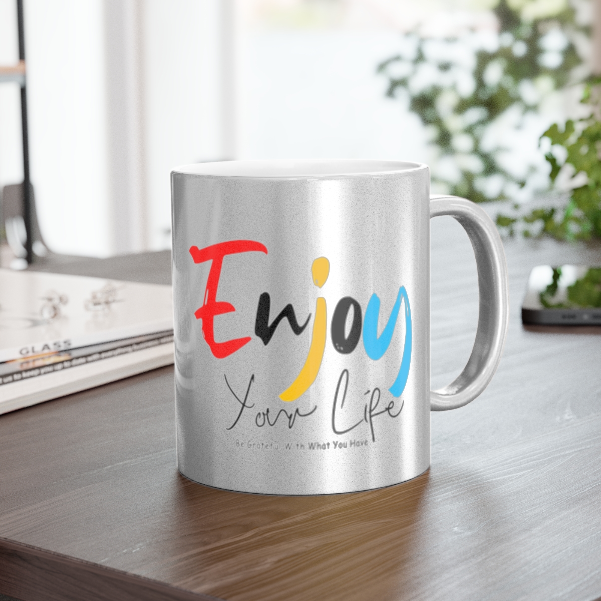 Daily motivation : Enjoy Your Life Be Grateful With What you have, Metallic Mug (Silver)